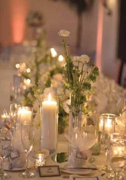 with white and ivory flowers sat atop the tables. The tables were named after