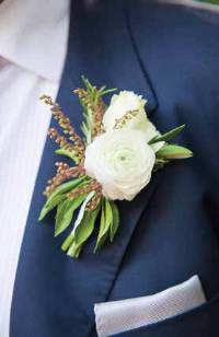 bud vases filled with white ranunculus. A dessert table near the dance floor held