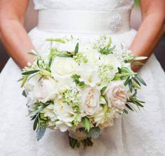 The elegant and stylish reception featured white and beige flower bouquets,