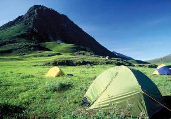 dry place to pitch a tent, a challenging task on the carpet of spongy,