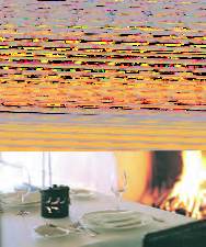 ocean-side dining, and features patio seating by an open fire pit.