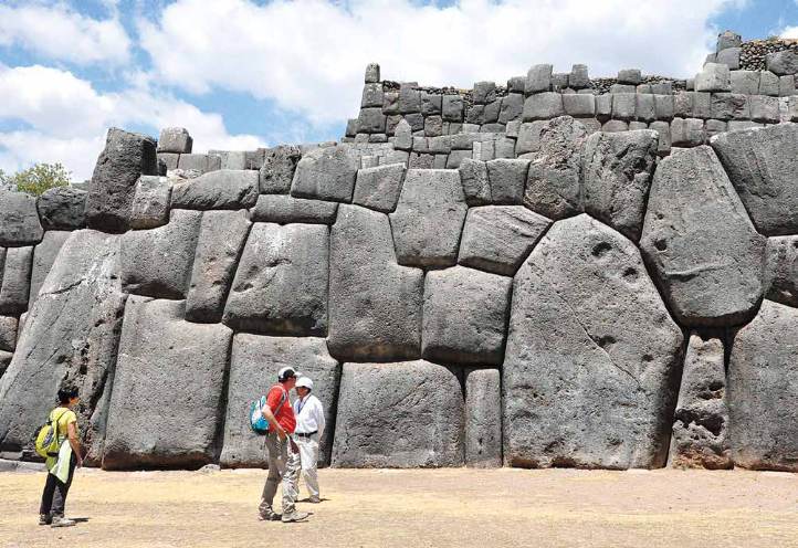 Tourists marvel at the huge carved stones found at Sacsaywaman,