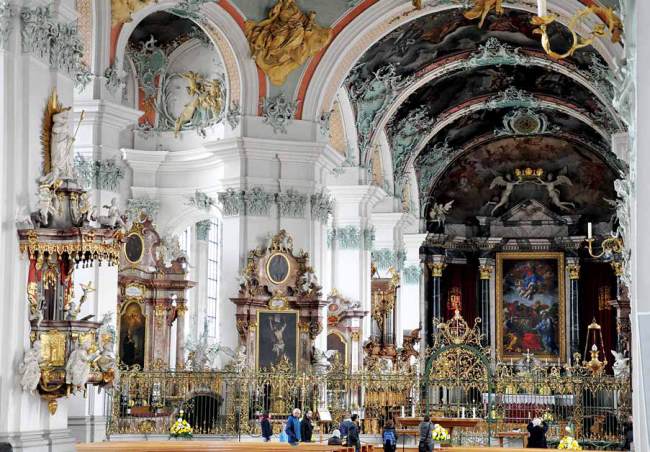 At first glance, the 18th-century interior of St. Gallen Cathedral seems