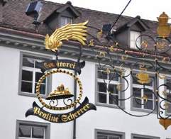 Gilded iron signs elegantly advertise
