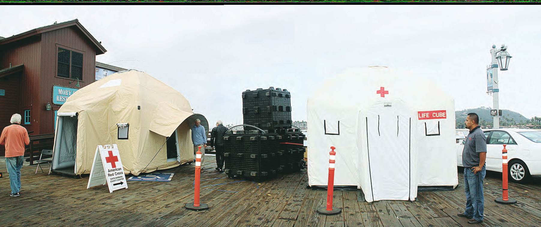 fundraiser outside Moby Dick Restaurant on Stearns Wharf in Santa Barbara: (left) the